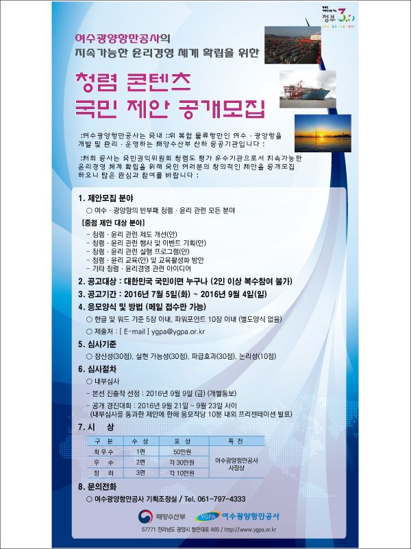 여수광양항만공사 청렴콘텐츠 국민 제안 공개모집