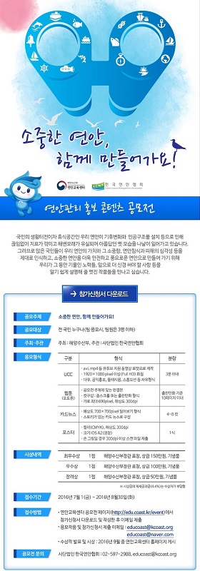 - 접수방법 : 연안교육센터 공모전 페이지(http://edu.coast.kr/event)