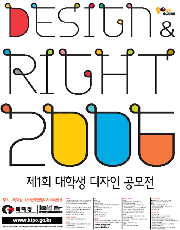 대학생 디자인 공모전 (Design & Right 2006) 안내 특허청 상표디자인심사본부에서는 예비디자이너인 대학생들에게 디자인권에 대한 인식을 고취하고, 역량있는 디자이너를 발굴, 창작의욕을 고취하고자 제1회 대학생 디자인 공모전(Design & Right 2006)을 오는 8월 30일부터 9월 1일까지 개최합니다. □ 주최 및 후원 ㅇ 주최 : 특허청, (사)한국산업디자이너협회 ㅇ 후원 : (사)한국디자인학회, 전국경제인연합회, 대한상공회의소, 한국무역협회, 중소기업협동조합중앙회 □ 입상작 전시 장소 및 일시 ㅇ 장소 : 코엑스 대서양관 ㅇ 일시 : 2006. 8. 30(수) ~ 2006. 9. 1(금) □ 공모분야 ㅇ 산업디자인 : 산업기기, 운송기기, 생활기기, 주얼리, 공예, 가구, 환경 ㅇ 시각/포장/패션디자인 : 포스터, 책표지, 포장지, 화장품용기, 포장용기 및 포장, 의상, 직물지 ㅇ 화상디자인 : 웹 아이콘, GUI 디자인, 캐릭터 등 ㅇ 글자체디자인 : 한글, 영문, 한자, 숫자, 특수문자 □ 응모자격 및 조건 ㅇ 디자인학과 재학생 및 대학원생(‘06.2월 졸업자 포함) ㅇ 특허청에 디자인등록출원 혹은 실용신안출원(접수 마감일 기준)을 했거나 등록된 디자인 ㅇ 순수 창작 디자인으로 모방작품은 심사에서 제외 □ 심사 및 결과발표 ㅇ 심사기준 - 심미성, 완성도 - 아이디어의 독창성 등 - 디자인재산권으로서의 가치(특허청 디자인심사기준에 의한 심사) ㅇ 심사 방법 - 1차 디자인설명 패널 및 출원서에 의한 심사 - 2차 실물(모형)심사 ㅇ 심사위원회 구성 - 학 계 : 대학교 조교수 이상 4명 - 산업계 : 책임연구원 이상 4명 - 특허청 : 디자인심사관 4명 ㅇ 결과발표 - 1차 발표 : 2006.8.1(화) 입상자 개별통지, 관련기관 홈페이지 공고 - 2차 발표 : 2006.8.30(수) 입상자 개별통지, 관련기관 홈페이지 공고 * www.kipo.go.kr / www.kaid.or.kr □ 작품 규격 및 접수 ㅇ 1차 접수 - 출품신청서 및 디자인/실용신안등록출원서 또는 디자인/실용신안등록증 첨부 - 패 널 : A1 사이즈 폼 보드 부착 1개 혹은 2개까지 가능 - 접수처 : 한국산업디자이너협회 “대학생 디자인공모전(Design& Right 2006)" 사무국 - 접수기간 : 2006. 6. 22(목)~2006. 6 24(토) 14:00 마감 - 주소 : 경기도 성남시 분당구 야탑1동 344-1 코리아디자인센터 3F314-1호 - 연락처 : 031) 703-2657 ㅇ 2차 접수 - 대 상 : 1차 입상작(제품, 패키지 등의 입체디자인에 한함) - 모 형 : 주최 측과 사전협의 ※ 출품작 이외의 기타 불필요한 소품 등의 진열은 허용치 않음. - 장 소 : 개별통지 - 접수기간 : 2006. 8. 3~4(금) ㅇ 반출 : 2006. 9. 1(월) 17:00분 이후 개별반출 자세한 사항은 붙임내용을 참고하시기 바랍니다.
