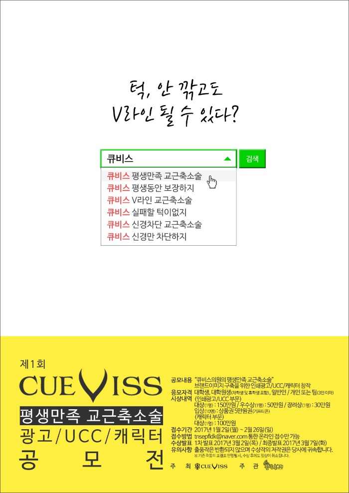 - 참가주제 : “큐비스의원의 평생만족 교근축소술” 브랜드 이미지 구축을 위한 창작물