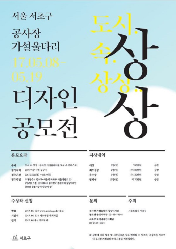 - 수상작발표 : 2017년 6월 2일(예정), 서초구청 홈페이지 www.seocho.go.kr