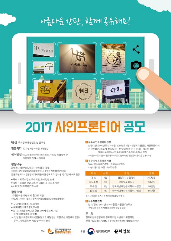 - 한국지방재정공제회 한국옥외광고센터 기획협력팀 T : 02-3274-2812 E : ymchoi@lofa.or.kr