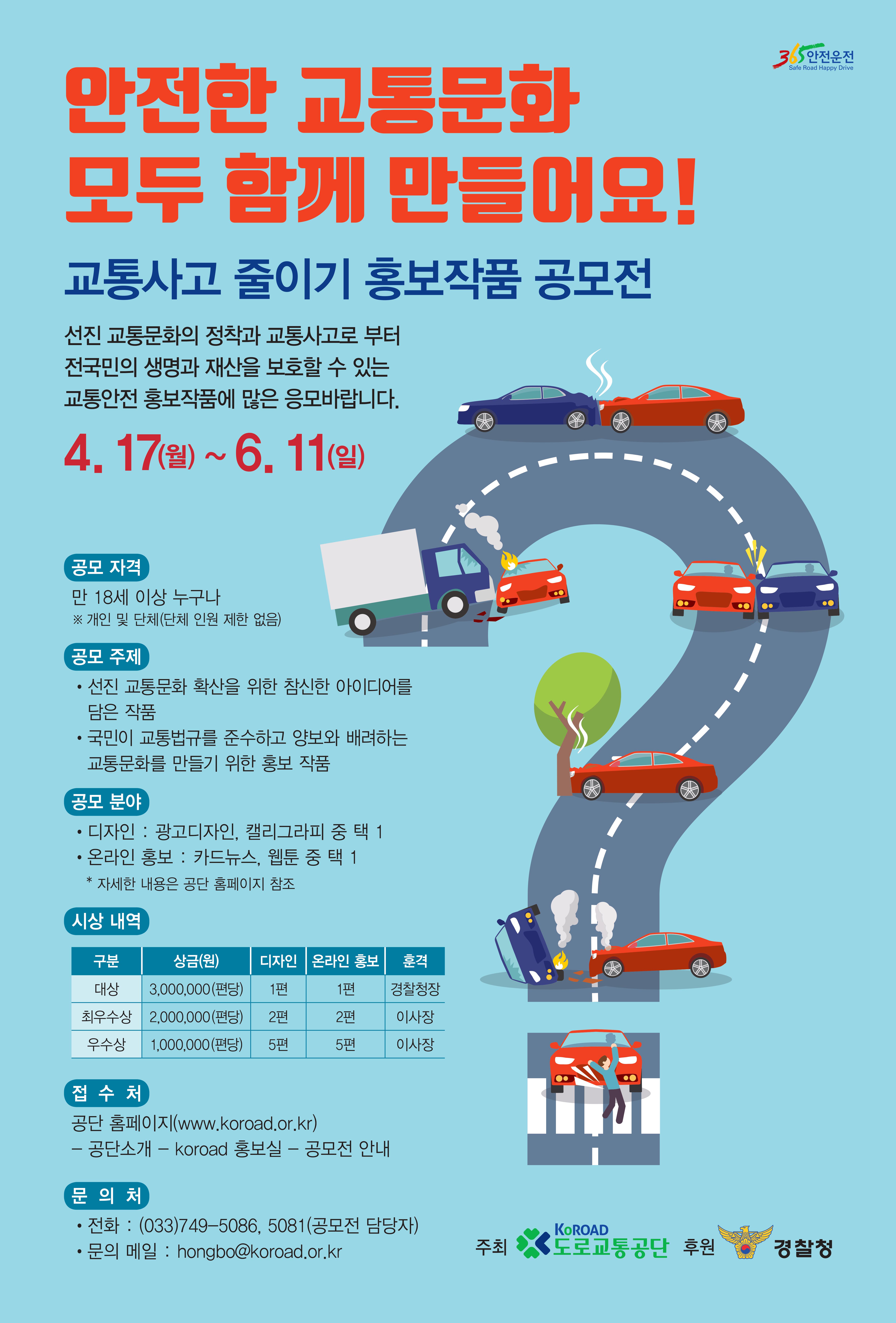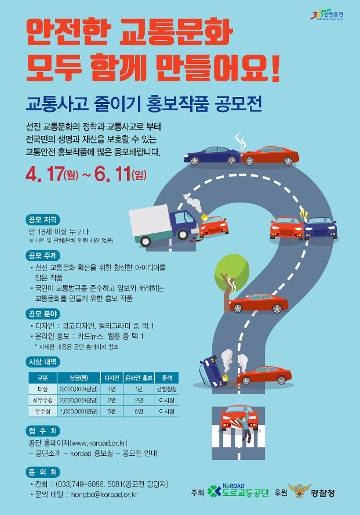 공모전 관련 문의사항은 문의처(033-749-5086) 또는 이메일(hongbo@koroad.or.kr)로 문의해주십시오.