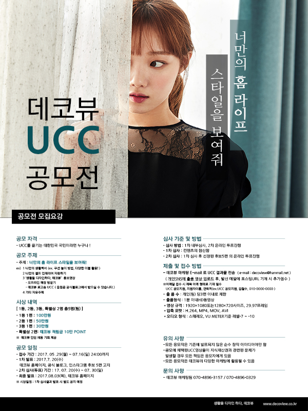 이성경이 추천하는 ' 데코뷰' UCC 공모전- ' 너만의 홈라이프스타일을 보여줘' (~07/16)