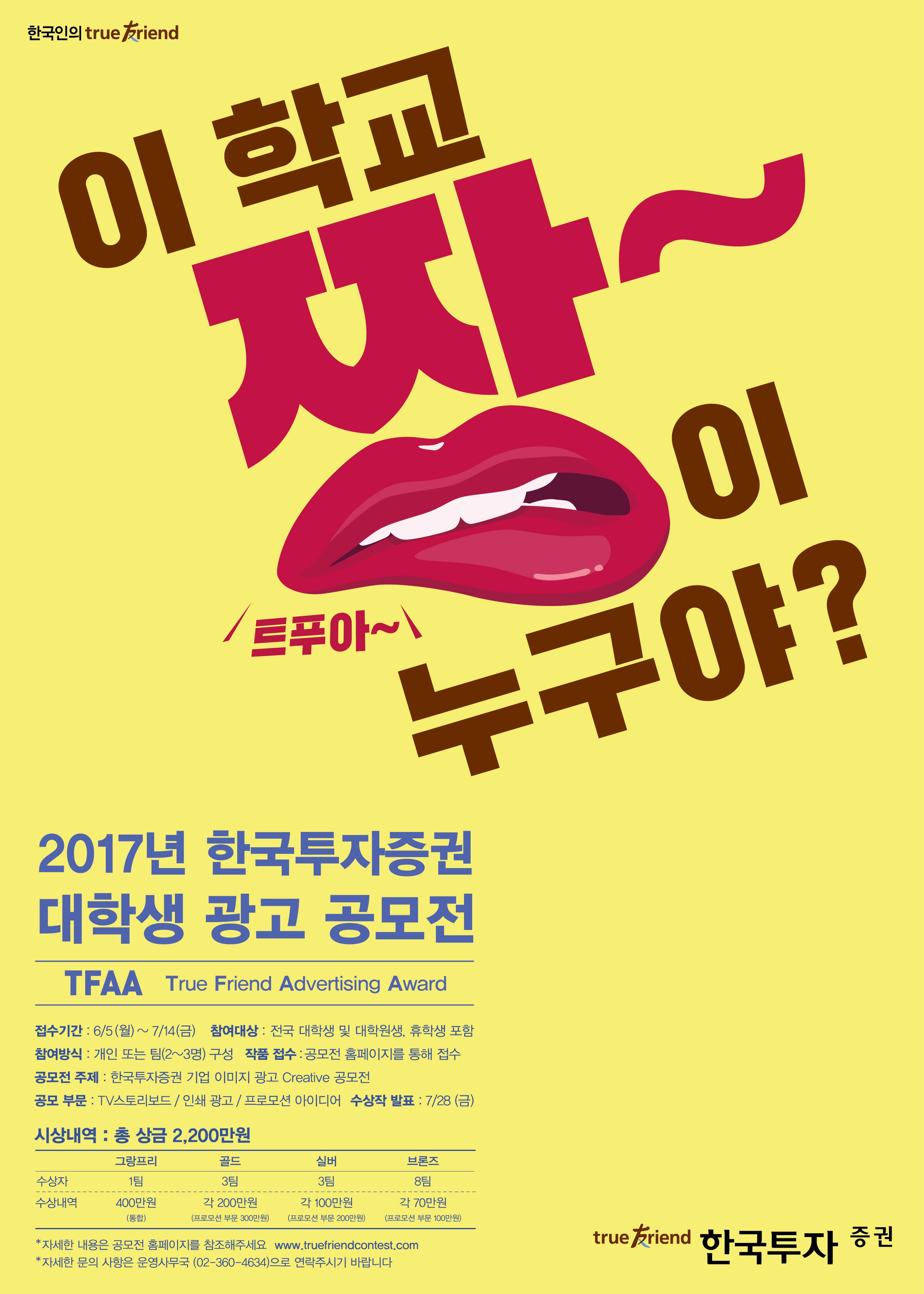 - 제출 양식은 홈페이지 http://www.truefriendcontest.com 에서 다운로드 가능