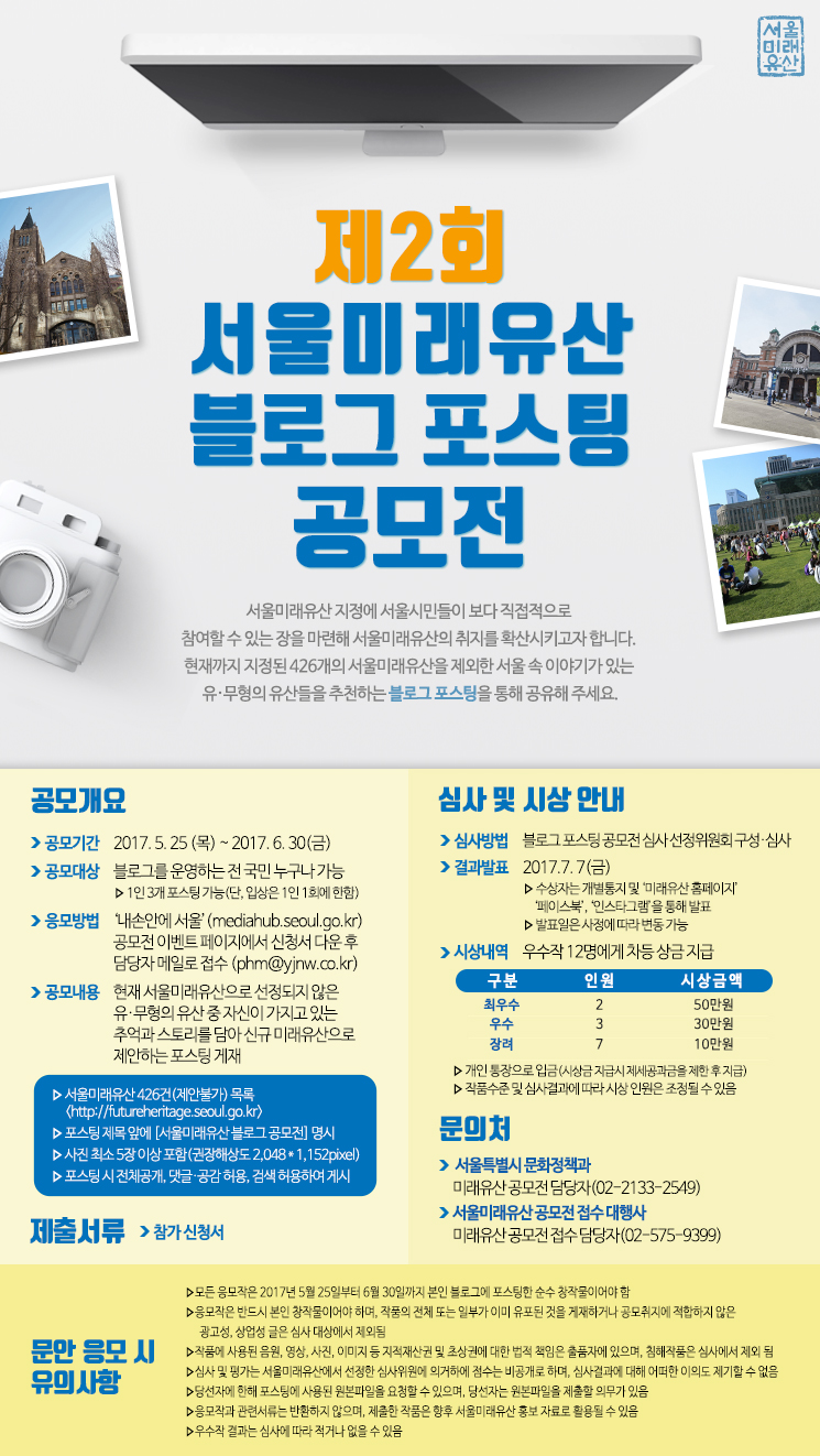 - 서울특별시 문화정책과 미래유산 공모전 담당자(02-2133-2549)