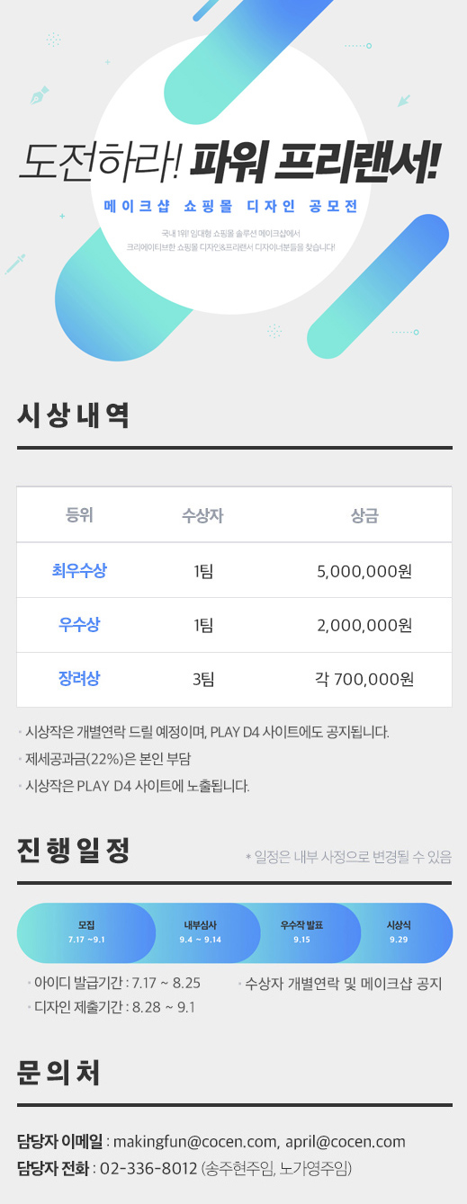 - 문의 (Tel.02-336-8012 / E-mail. makingfun@cocen.com / april@cocen.com )