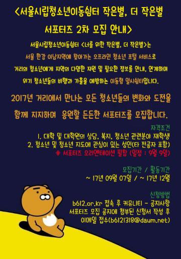 서울시립청소년이동쉼터 작은별/더작은별 서포터즈 모집