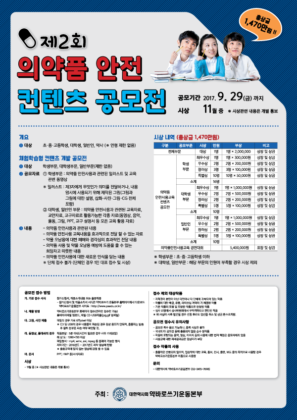 - 참가신청서 및 작품소개서 : 서식은 약바로쓰기 운동본부 홈페이지에서 다운로드