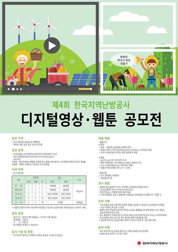 - 모든 출품작의 저작재산권 및 저작인격권은 응모자에게 있으며, 공사는 수상작에 한해 온• 오프라인 광고, 전시 등 공사 홍보를 위한 비영리적 사용권한을 가짐