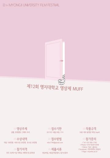 안녕하세요. 이번 2017년 11월, 제12회 명지대학교 영상제 MUFF를 개최합니다. 명지대학교 방송국 주최로 진행되는 MUFF는 작품성과 전문성을 기반으로 한 작품들이 모여 그 중 뛰어난 작품을 수상하는 명성 있는 대학 영상제 중 하나입니다. 영상에 관심 있으시거나 패기와 열정으로 자신만의 색깔을 영상에 담아내고픈 미래의 감독분들! 이번 명지대학교 영상제는 모두에게 좋은 기회, 무대가 될 수 있을 것이라 생각합니다. 여러분들의 생각하는 진심이 담긴 영상들, 기대하겠습니다. 전국의 대학생 여러분들의 많은 참여 바랍니다.