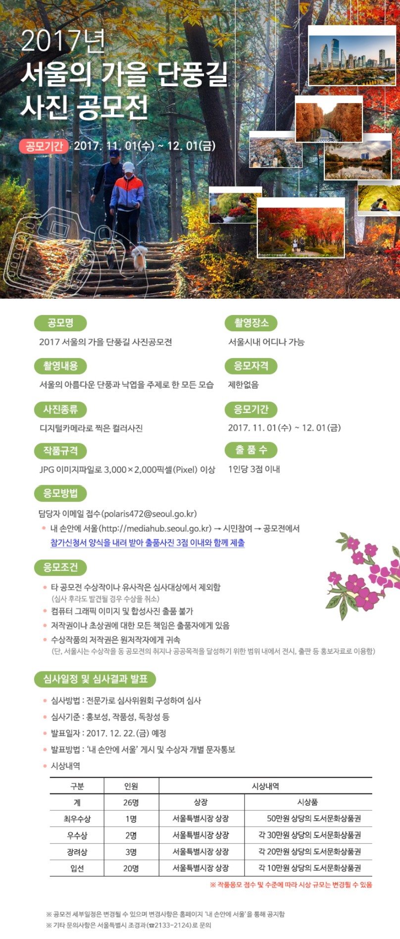 http://mediahub.seoul.go.kr/ → 시민참여 → 공모전 에서 참가신청서 양식을 내려 받아 출품사진 3점 이내와 함께 제출