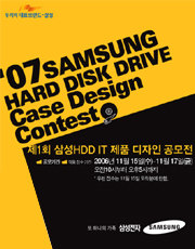 제1회 삼성HDD IT 제품 디자인 공모전 멀티미디어 및 휴대형 엔터테인먼트 기기의 발달로 저장장치의 유용성이 대두되고있습니다. 당사의 신제품 1.8" HDD (최대 80G)를 이용한 일반 소비자용 휴대용 외장하드를 국내외 시장 개척 및 판매 목적으로 출시하고자 대학생 및 일반인 여러분의 참신한 아이디어를 공모하오니 많은 참여 부탁 드립니다. 1. 공모부문 : 1.8" 외장형 HDD 케이스 및 박스 2. 공모주제 : 휴대성과 안정성이 강조된 참신한 디자인. 디지털 유목민인 nomad족을 위한, 그들의 스타일과 감성에 맞는 감각적인 디자인의 휴대용 외장장치. 3. 시상 : 대상 1명 상장, 상금 300만원 우수상 1명 상장, 상금 100만원 장려상 5명 상장, 상금 10만원 (상금에는 원천 소득세를 포함함. 그룹의 경우, 상장은 1매만 수여함.) (심사결과에 따라서 수상별 해당 작이 없을 수도 있음.) 4. 공모 자격 및 응모작품수 : 국내외 대학(전문대, 4년제 대학) 및 대학원에 재학 또는 휴학중인 자(외국인 포함)와 일반인.(개인 또는 4인 이내의 그룹으로 응모 가능함) 응모 작품수는 제한없음. 작품은 국내외 미발표 작에 한하며 심사 후 표절 시비 발생시 심사위원회의 결정에 따라 입상을 취소할 수 있음. 5. 공모기간 : 작품 접수 기간 2006년 11월 15일(수)~11월 17일(금) 오전10시부터 오후5시까지 *우편 접수는 11월 17일 도착분에 한함. 6. 공모방법 : 디자인에 대한 Concept과 최종 렌더링(혹은 모형사진)을 보드 (A2사이즈 : 가로420mm X 세로 594mm) 에 부착하여 제출. (표현방법 제약없음) 제출시 홈페이지 이벤트페이지에 있는 공모전메인에서 다운로드하여 작성한 지원서 양식과 함께 동봉하여 우편으로 접수함. 일러스트, 사진촬영 슬라이드등 작업데이터는 제품출시시 필요하므로 수상완료시까지 개인 보관요망. 7. 작품제출처 : 행사대행기관 / 서울시 영등포구 문래3가 83-2 우리벤처타운 401호 (주)디자인루트 공모전 담당자 앞 (2호선 문래역에서 도보로 10분거리) 8. 출품료 : 무료 9. 심사 기준 및 심사위원 : 심사기준은 다음의 항목에 준하여 평가한다. (공평성 / 이해성 / 사용성 / 심미성 / 생산성 / 생태성 / 안정성) 심사위원은 국내외의 관련 전문가로 구성하여 공정하게 심사하며 추후 심사결과 및 명단을 공지한다. 10. 심사결과 발표 : 심사결과는 삼성전자 홈페이지 (www.samsunghdd.co.kr)에 공지하며, 해당자는 시상식 참석을 개별 통보함. 11. 발표일 : 2006년 11월 30일 (목) 오후4시 12. 시상식 : 2006년 12월 15일(금) 오후4시,(주)삼성전자 수원사업장 내(시상식 일정은 추후 변경될 수 있음) 13. 입상작 사후 처리 : 접수된 작품과 데이터는 일체 반환하지 아니하므로 응모전에 필요한 데이터를 별도 저장해 둘 것을 권장함. 권리취득 당선작의 저작권을 포함한 모든 권리는 주최기관에 귀속됨. 당선작은 심사 혹은 상품화 과정 등에 있어서 주최기관의 발의에 의해 당선자에게 당선작에 대한 문의가 있을 수 있음. 응모 용지에 기재된 사항이 사실과 다를 경우 당선을 취소함. 응모자는 위 내용에 동의하지 않을 경우 응모마감 이전에 응모를 철회할 수 있으나, 응모에 소요된 모든 비용은 반환하지 아니함. 14. 주최기관 : (주)삼성전자 반도체총괄 스토리지 사업부 15. 행사대행 : (주)디자인루트 16. 접수문의 : 행사문의, 공모전 관련 문의사항은 이메일(HDDmania@samsung.com)에 한해 문의가능합니다. (메일폭주시 회신이 어려울 수 있으므로 (samsunghdd@designroot.co.kr)로 문의하시면 보다 빠른 답변을 들을 수 있습니다.)