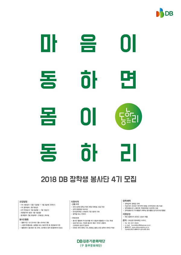 2018 DB 장학생 봉사단 4기 모집