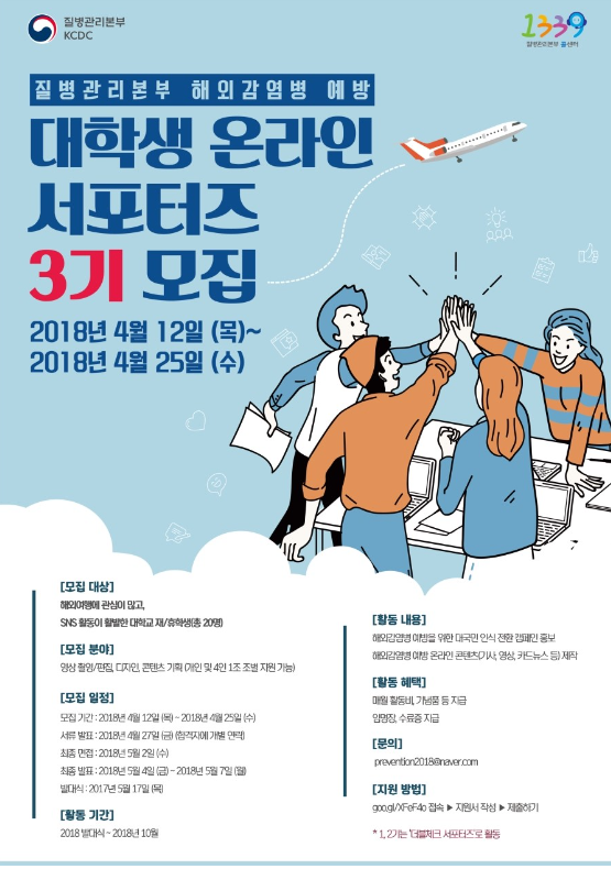 질병관리본부가 대학생 온라인 서포터즈 3기