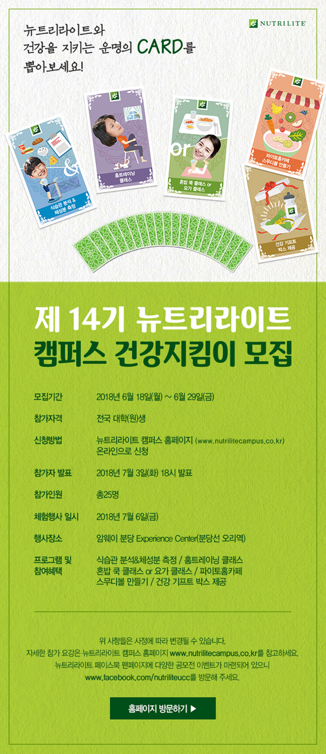 - 뉴트리라이트 캠퍼스 홈페이지 www.nutrilitecampus.co.kr 에서 온라인 신청