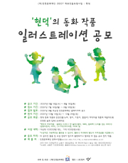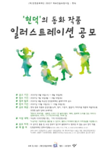 (재)인천문화재단 2007 대표인물조명사업 : 현덕 현덕의 동화 작품 일러스트레이션 공모 인천문화재단에서는 “2007 인천문화예술 대표인물(현덕) 조명사업”의 일환으로 현덕 동화 작품의 일러스트레이션을 공모합니다. 현덕 작품의 주인공 노마를 중심으로 한 등장인물(노마, 영이, 기동이, 똘똘이)의 캐릭터를 작품에 잘 어울리도록 표현한 일러스트레이션을 공모해 현덕의 작품을 새롭게 조명합니다. 역량 있는 작가 여러분의 많은 참여를 바랍니다. ○ 주최 및 주관 : (재)인천문화재단 ○ 협 찬 : (주)창비 ○ 공고 기간 : 2007년 5월 16일 ~ 2007년 8월 16일 ○ 접수 기간 : 2007년 7월 16일 ~ 2007년 8월 16일 ○ 결과 발표 : 2007년 9월 초순경 인천문화재단 홈페이지에 공고 ○ 전시 기간 : 2007년 10월 13일(토) ~ 2007년 10월 25일(목) ○ 공모 부문 : 현덕 동화 작품의 등장인물(노마, 영이, 기동이, 똘똘이) 캐릭터를 작품에 어울리도록 표현한 동화 일러스트레이션 ○ 심사 및 시상내역 (1) 시상내역 : 대상작 1,000만원(1편) 가작 100만원(4편) ※ 공모에서 수상한 일러스트레이션(캐릭터)을 그림책으로 출판할 수 있으며, 그 경우 작가에게 별도의 저작권료를 지급합니다. (2) 심사 전문가 및 관계자로 구성된 별도의 심사위원회에서 심사 ○ 응모 자격 : 타 공모전 출품 수상된 적이 없으며, 출판이나 발표된 적이 없는 순수 창작 작품. 기성과 신진작가의 구분 없이 모두 참여 가능. ○ 제출 서류 : 작품 원본(원화, 컴퓨터 일러스트레이션의 경우 출력), 이미지 파일, 참가신청서(홈페이지에서 다운로드받아 작성) ○ 작품 규격 및 유의사항 - A1 [59.4 x 84.1cm]사이즈 안에 자유롭게 제작하고, 가급적 포트폴리오용 아트백에 담아 제출 - 인물이 포함된 일러스트레이션 5컷 이상 제출 - 입체작품도 가능하며 파손이나 손상되지 않도록 제출 - 컴퓨터 일러스트레이션의 경우 칼라로 출력하여 제출 - 작품 이미지 파일(jpg, ai)을 CD에 저장해 제출 ※ 제출된 자료 및 작품은 반환하지 않음 ○ 접수 및 제출처 - 접수방법 : 방문 및 등기 우편 접수(접수 마감일 8월 16일 소인분에 한함) - 제 출 처 : 인천문화재단 문화사업팀 (405-841) 인천광역시 남동구 중앙공원길 38 한국토지공사 빌딩 3층 (재)인천문화재단 - 문 의 : 전화 032-455-7137 이메일 wimkim@ifac.or.kr 홈페이지 www.ifac.or.kr ○ 작품 활용 - 출품작과 수상작은“2007 인천문화예술 대표인물, 현덕 조명사업”의 전시회에 전시될 수 있으며,관련 전시물, 인쇄물(도록, 리플렛, 기념품, 캘린더 등) 등 각종 홍보물과 온라인상에서 행사 홍보의 목적으로 활용됩니다. - 수상작의 저작권은 향후 3년간 인천문화재단이 양도받아 관리하도록 하고, 행사 홍보 및 비영리 목적인 경우에는 저작권료 없이 계속 사용할 수 있습니다. - 공모에서 수상한 일러스트레이션(캐릭터)을 기반으로 한 그림책 출판 등 출판물에 대한 권한과 출판권은 인천문화재단과 창비에서 공동으로 소유합니다.(출판시 작가에게 별도 저작권료를 지급합니다.) - 신청서를 제출한 자는 위 규약에 동의한 것으로 간주합니다. ○ 현덕의 주요작품 동화집
