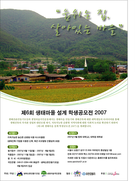 □ 사 업 명 : 제6회 생태마을 설계 학생공모전 2007- 숨쉬는 집, 살아있는 마을