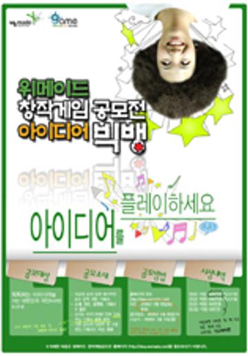 ● 공모대상 - 톡톡튀는 아이디어를 가진 대한민국 국민이라면 누구나! - 팀 구성도 가능하나 최대 팀원 4명으로 제한 ● 공모일정 - 접수마감 : ~ 2008년 3월 18(화) 18:00 - 결과발표 : 2008년 3월 26일(수) - 시 상 식 : 2008년 3월 31일(월) ● 공모주제 - 소재, 장르, 플랫폼, 기획서 수 불문 - 지금껏 보지 못한 획기적인 순수 창작 게임 기획서 - 넘치는 아이디어로 인한 다수 게임 기획서 출품 환영 ● 공모방법 - 위메이드 창작게임공모전 홈페이지http://idea.wemade.com 에서 공모전 양식 다운로드 - 공모전 응모신청서 작성 - 공모전 양식대로 자유롭게 작성. (단, 공모전 양식 이외의 파일은 MS-Word 문서(doc 파일)이나 Powerpoint 문서(ppt 파일)로 한정 - 공모전 응모신청서와 공모전 양식을 자신의 이름으로 압축 - '아이디어 공모하기' 버튼을 클릭 후, 기획서 제출 ● 유의사항 - 공모작은 순수 창작물에 한 함. - 출품작 반환불가, 수상작의 아이디어와 저작권 등 모든 권리는 위메이드 엔터테인먼트에 귀속됨. - 표절 및 중대한 결격사유가 있을 경우에는 수상이 취소될 수 있습니다 - 심사결과에 따라 해당 수상자가 없을 수 있음. ● 문의처 -위메이드 창작게임공모전 Tel: 02-3149-0600 / e-mail: idea@wemade.com |