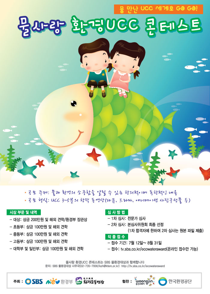 SBS, 환경부, 환경운동연합 공동으로“물사랑 환경 UCC 콘테스트”를 아래와 같이 개최합니다.