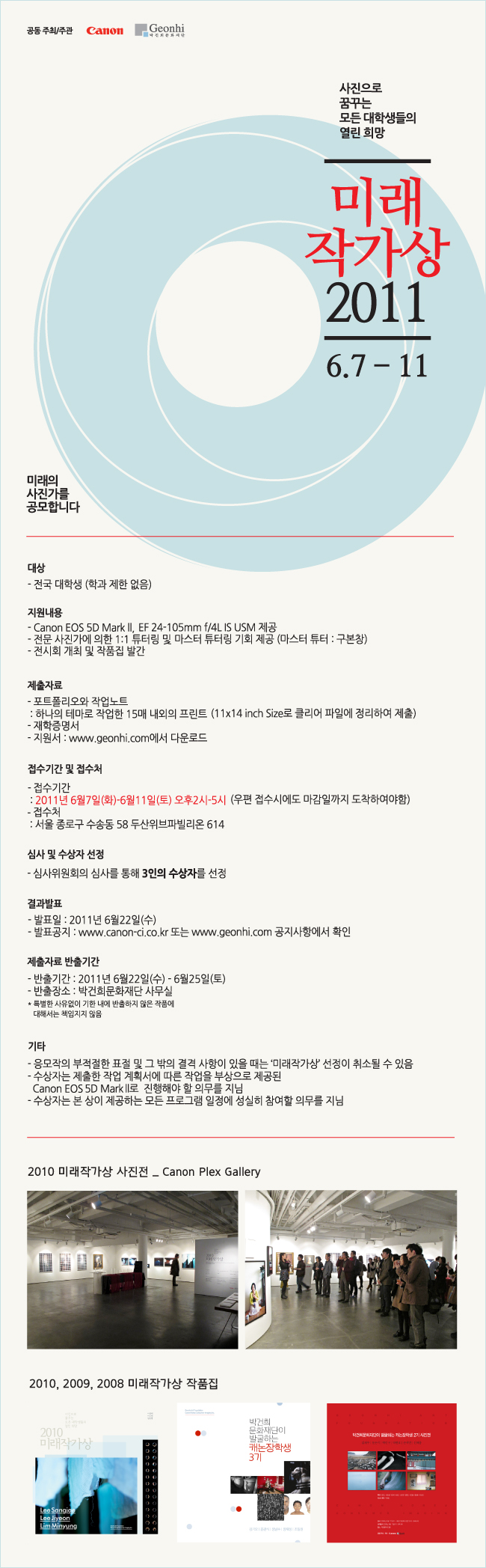- 심사결과는 2011년 6월 22일 www.canon-ci.co.kr 및 www.geonhi.com에서 발표