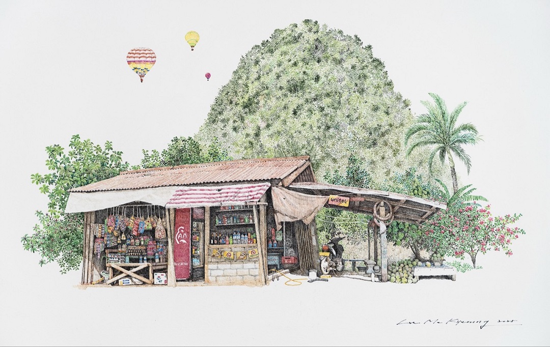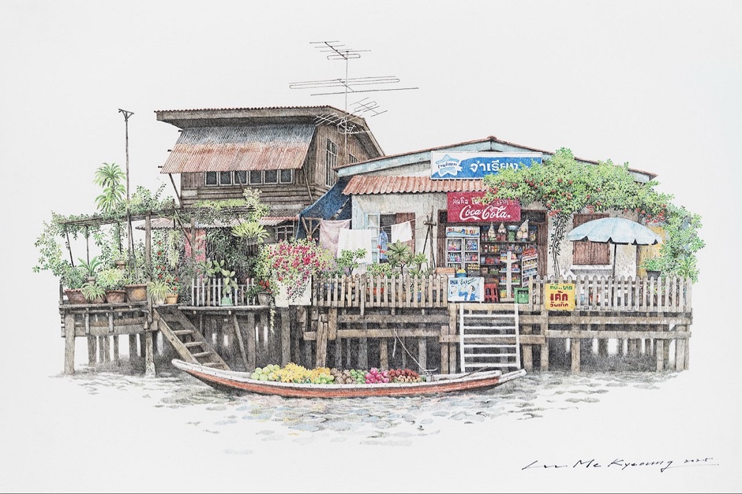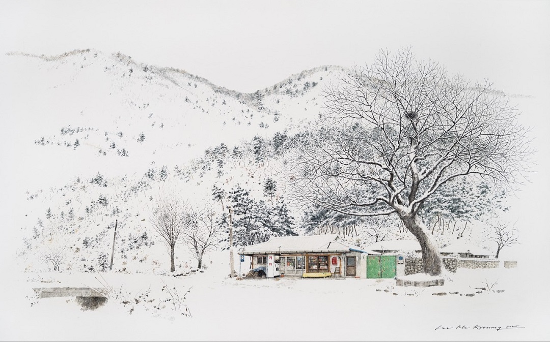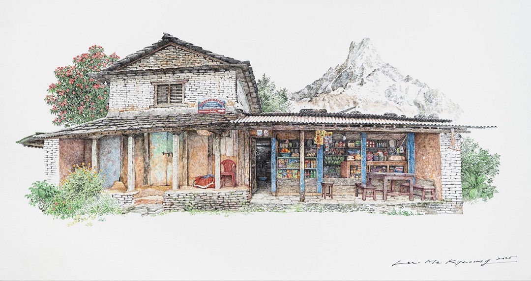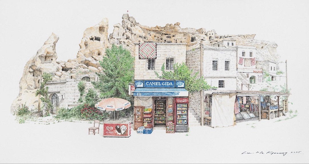 그는 공간을 그리는 것이 아니라 그 공간을 지켜온 사람의 시간을 기록하고 있기 때문이다.